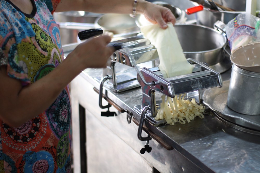 The woman pictured below was preparing noodles for a dish known as Pan Mee (which typically features pork).