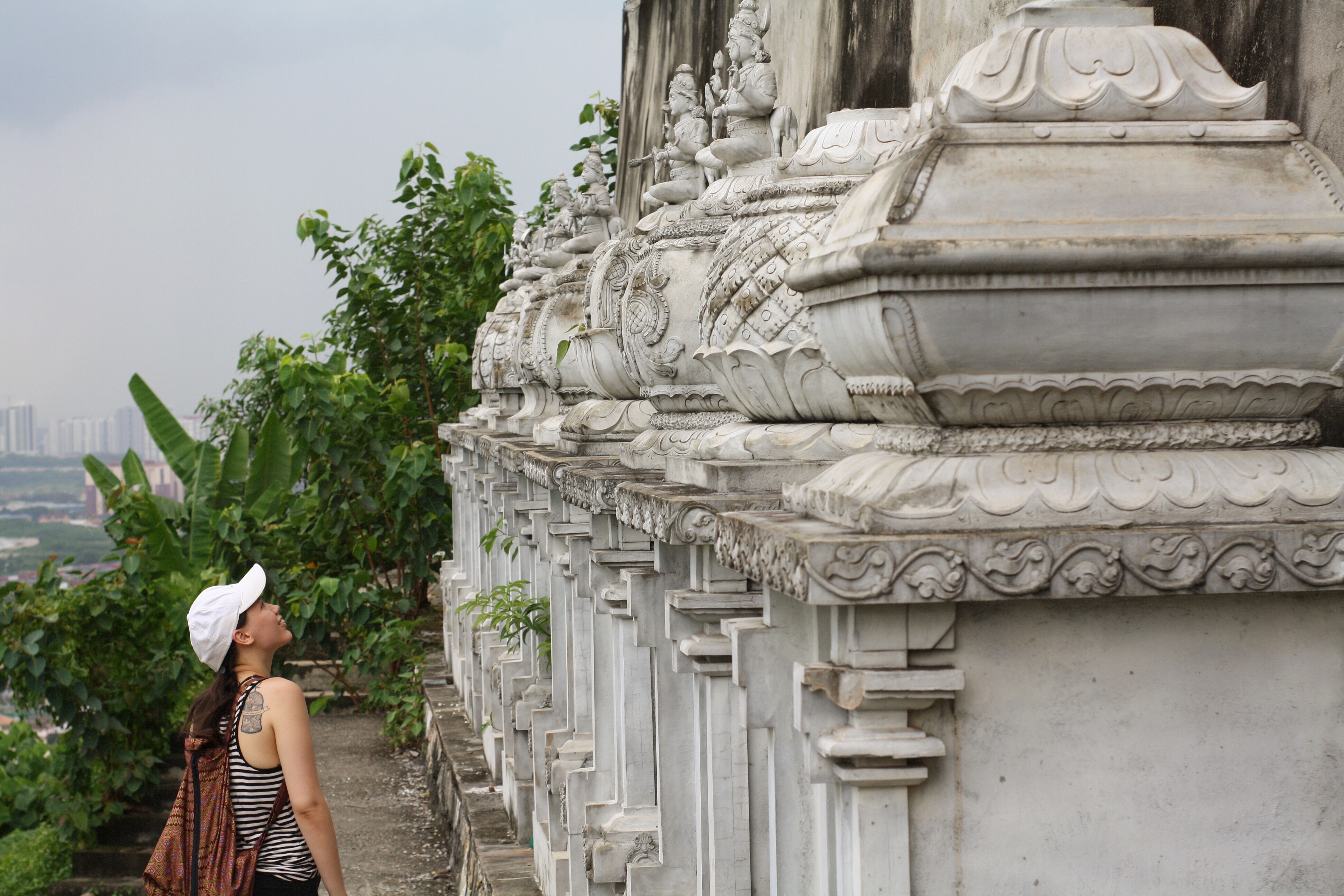 Yes, we discovered an abandoned Indian temple at the peak of Bukit Gasing, which we reached by turning right at the fork in the road near the entrance then continuously ascending. The compound was surrounded by high walls, which were decorated with a symbolic snake (Naga) wrapping around the complex, but just as we were nearing the entrance of the temple, a police car with flashing lights appeared so we decided to stay hidden and gradually leave. There are also many unfinished pillars which can be used to admire the view from – I attempted this despite my fear in heights and as expected, had problems developing the courage to jump off the pillar but after soaking in the view and some contemplation, managed a smooth jump off the pillar.