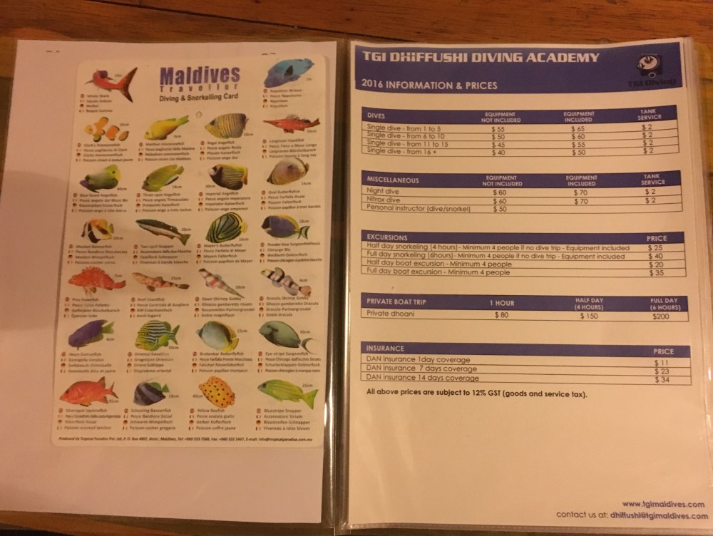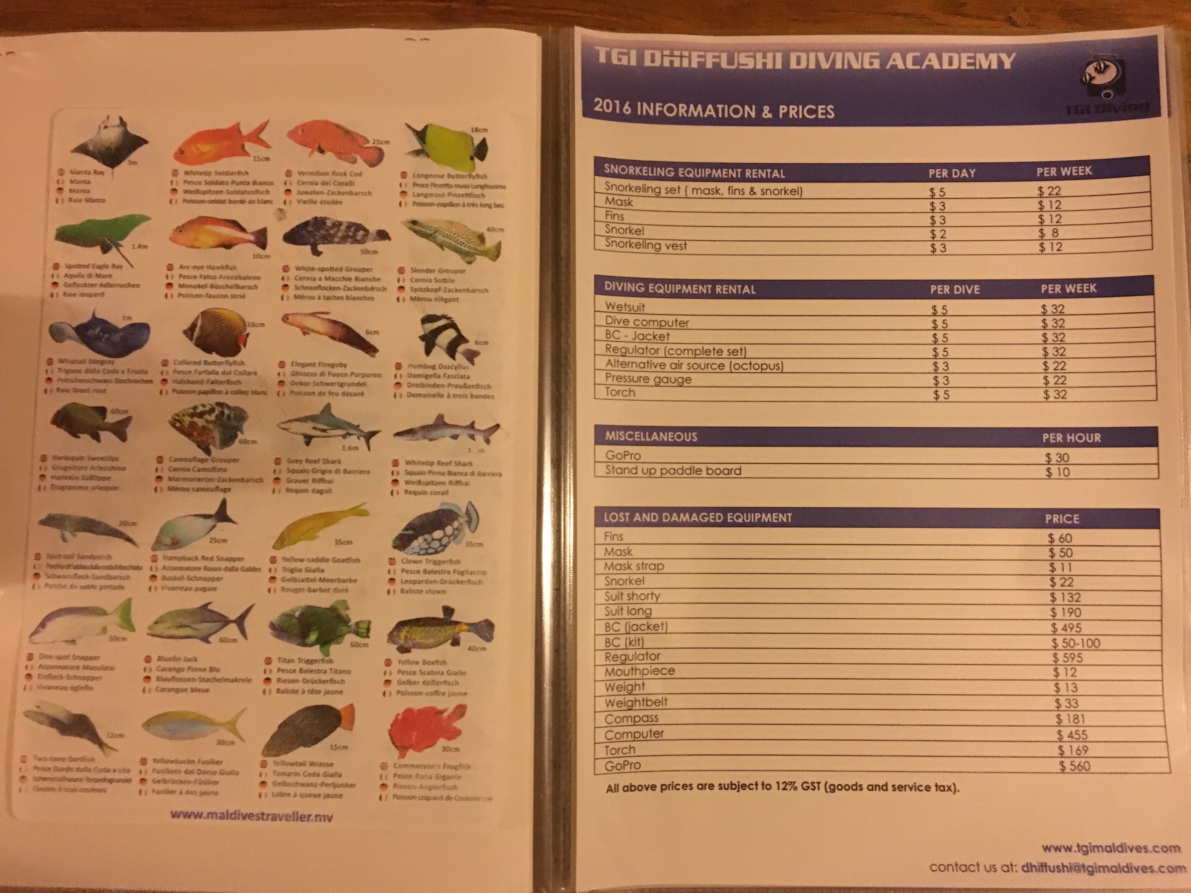 Currency: Switches between Maldivian Rufiyaa and US Dollars but the overall prices on the island are low (except for water activities).