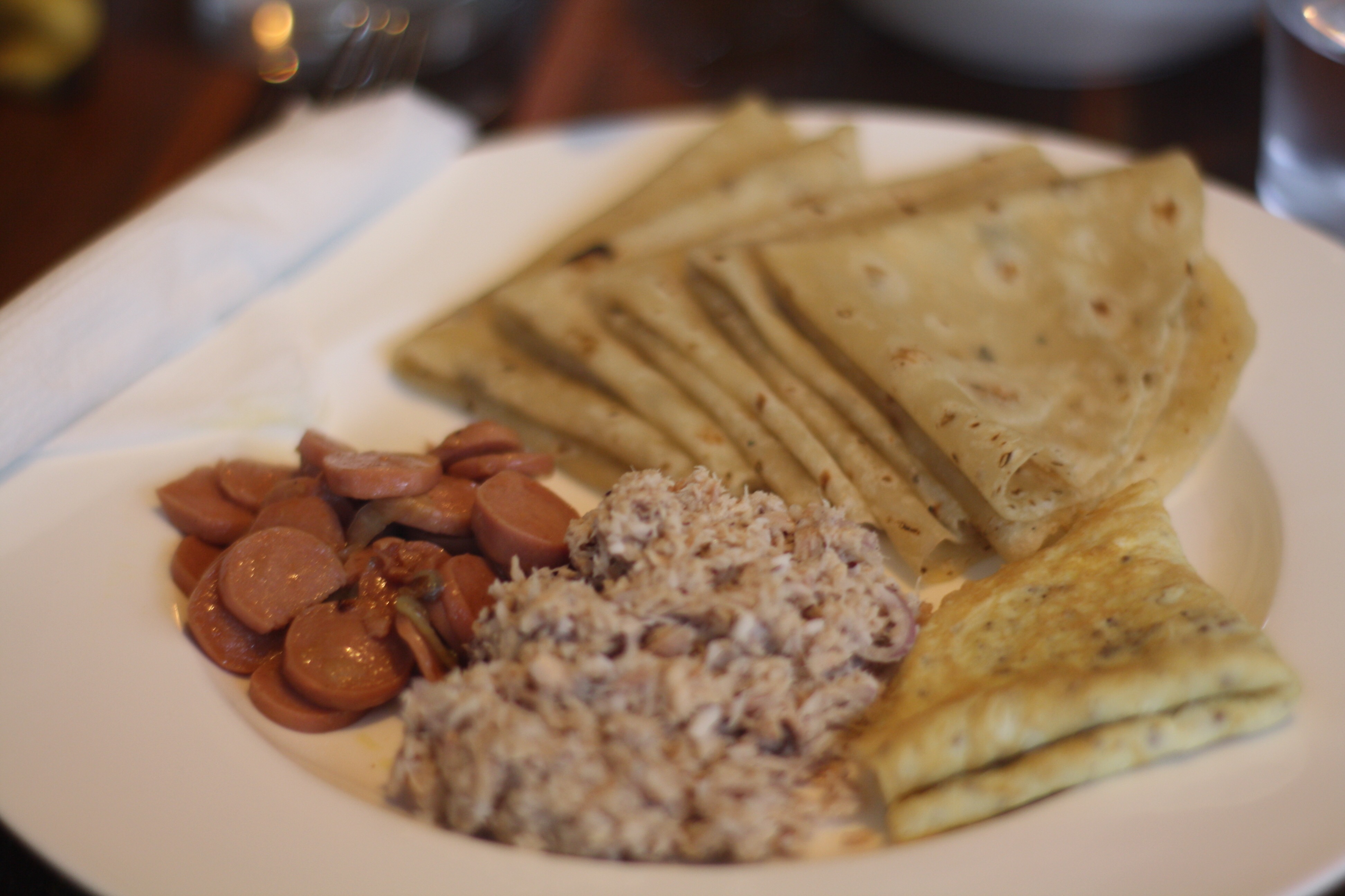 Besides the various guesthouses, there are only three establishments serving food and drinks. We visited Faruma Restuarant after our arrival in the evening and the first meal had on Dhiffushi was delicious – the menu is extensive, catering to various palettes (such as Greek, Russian, Italian, American and more), but of course also offers typical Maldivian dishes, which was what we all ordered. I was curious about two items on the menu: the passion-fruit juice and a local delicacy named roshi, which I devoured with fish curry; this was my first introduction to roshi (similar to Indian chapati), which we then ate for breakfast every day with tuna (what else?).