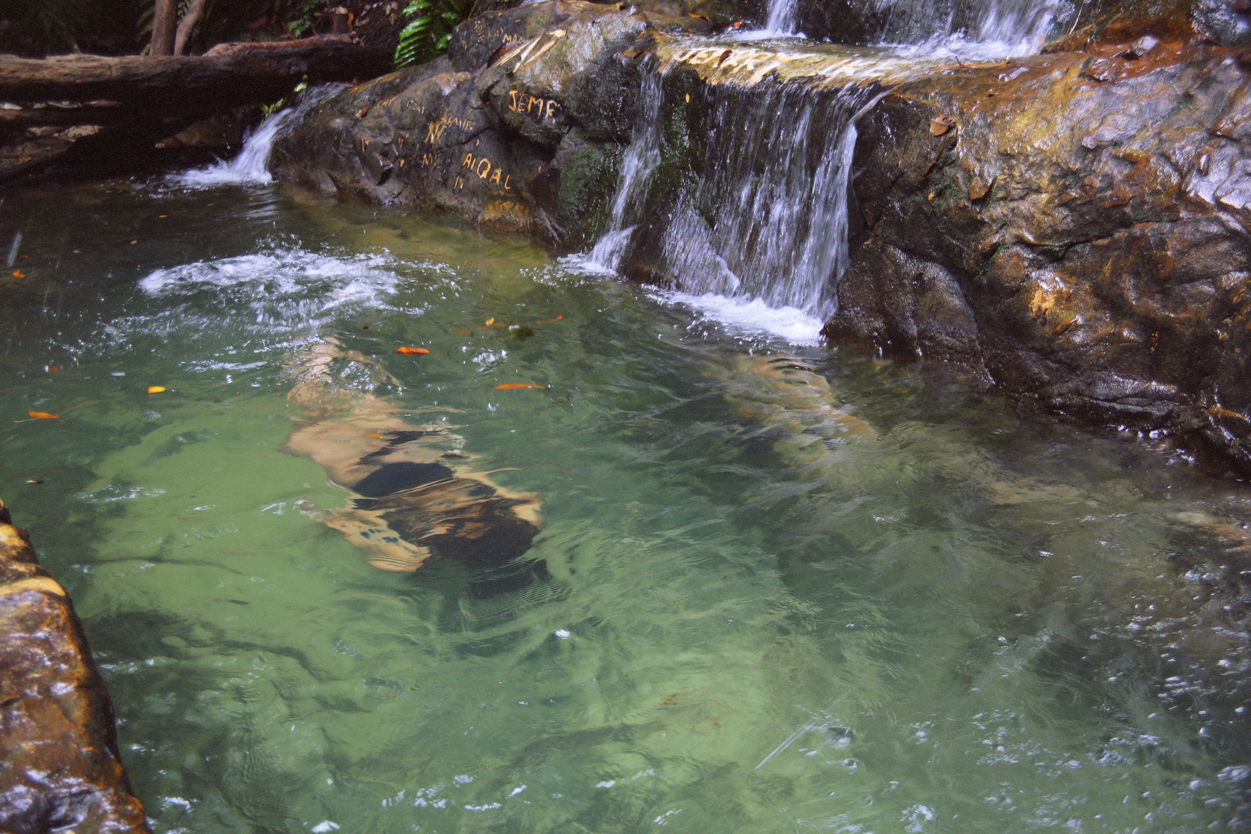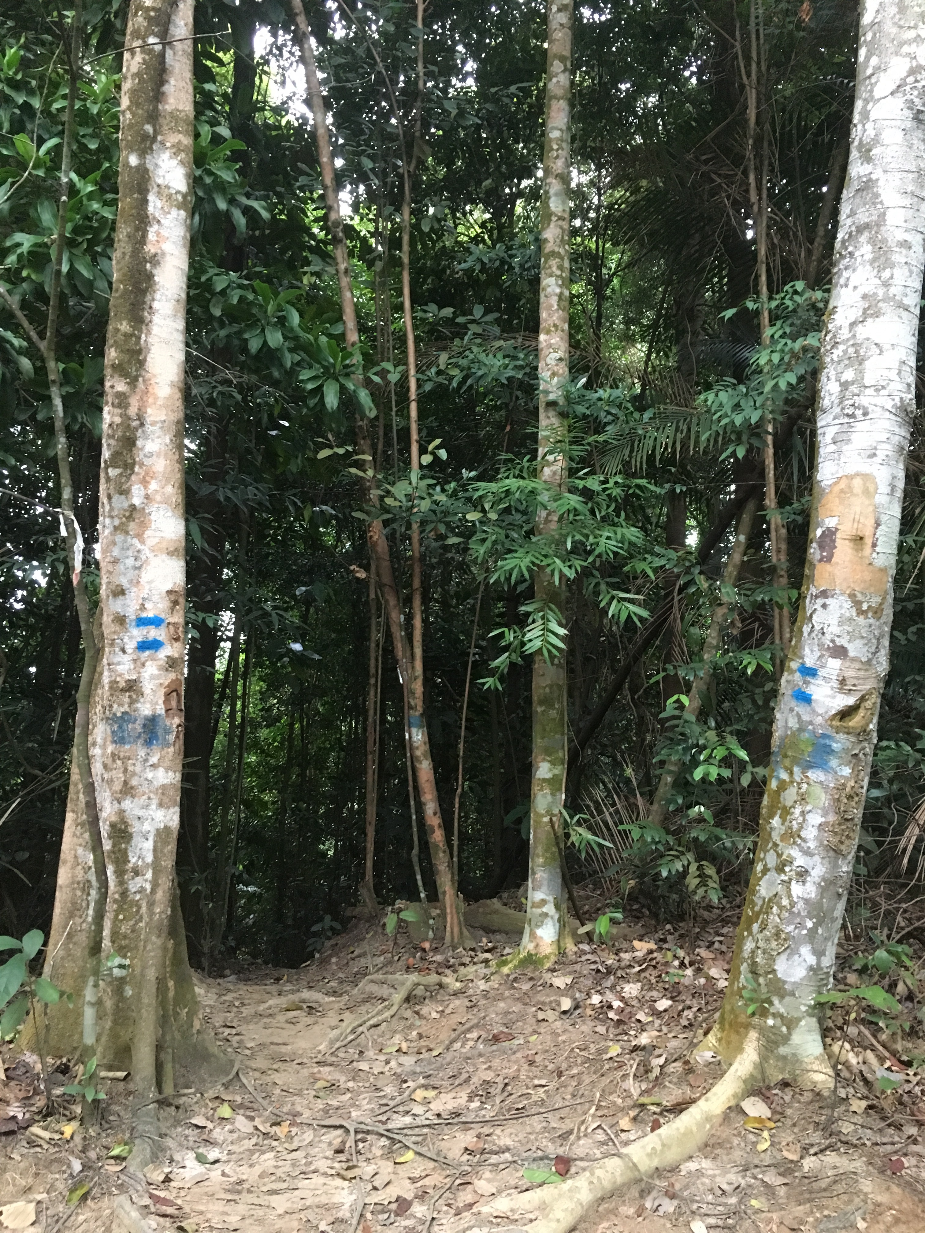 I initially attempted to find the blue lagoon in Puchong at the beginning of the year but due to time constraints and the weather, didn’t manage to but today was the day – after being brought to the wrong location (again), we decided to keep searching and were indeed rewarded. For those wondering, as I was, what to Waze in order to find the infamous blue lagoon in Puchong? Well, just Waze Persiaran Bukit, Puchong, and you’ll arrive at a dead-end, which is where the trail starts – there should be several stalls selling drinks and a bright pink shoplot, use that as your landmark! We decided to enter via the trail located on the left, away from the stalls, and after a short walk, stumbled upon a small Chinese shrine nestled among nature; from there, we ascended via the trail situated on the right, away from the shrine, and continued ascending until we came to a clearing – we had asked a woman if she knew the location of the waterfall and she just said to turn left; so after turning left, we chanced upon another clearing which is basically unmissable, especially as the trees are painted with blue ink (pictured below). Using our intuition, we followed the blue markings until we reached the waterfall, almost an hour later. Due to the delay of our arrival, we decided to stay at the first cascade of the waterfall instead of continuing on as the sight was temptatious in its beauty and the cold water was simply refreshing!