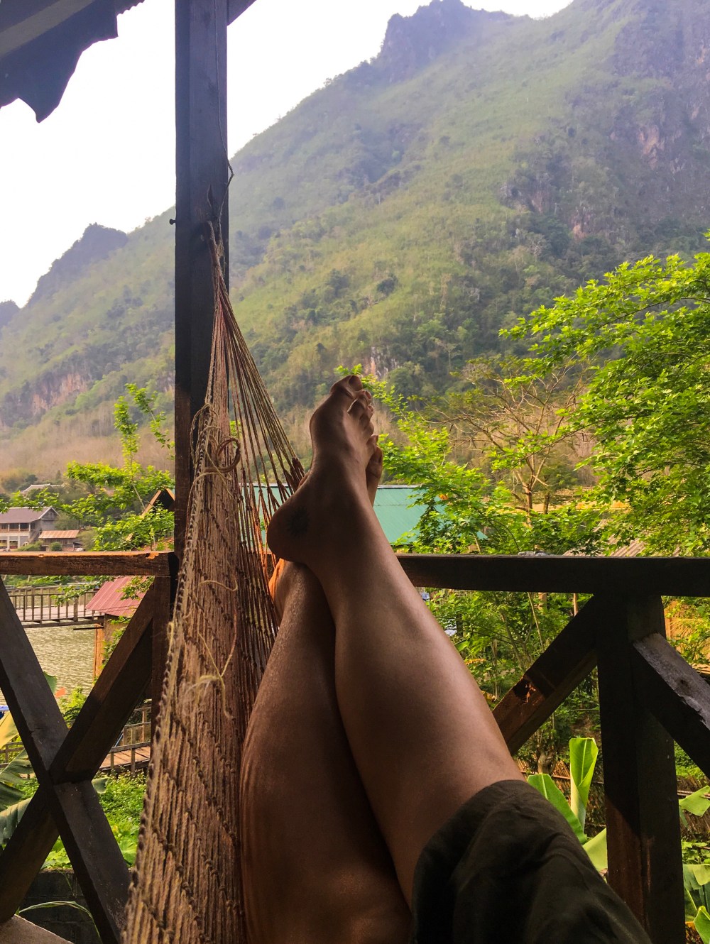 Nong Khiaw, Laos, is a sleepy village set amidst mountainous terrain and the perfect place to put your feet up – in a hammock on your balcony, that is! Connected to nearby villages by the Nam Ou river, there are numerous riverside bungalows to choose from but I recommend Bamboo Paradise; for 50,000 Laotian Kip (23MYR/6$) per night, you have a view of the river and the mountains from your private balcony. Besides that, you have a double bed, hot water, and wifi – basically a budget backpackers dream, or at least my solo-female travelling dream.