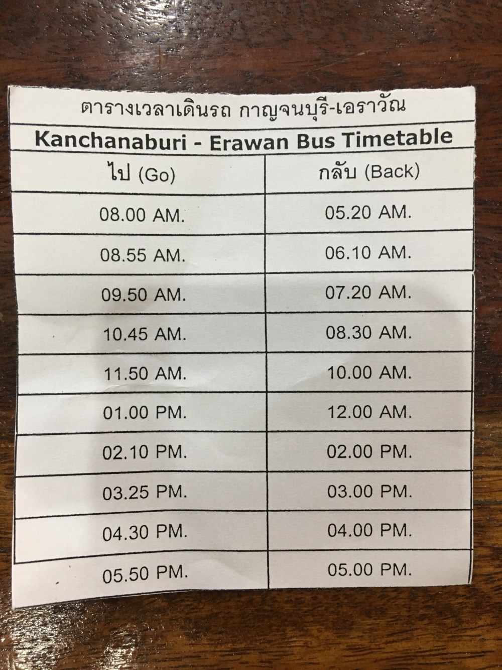 How To Get There: Via local bus (#8170) from Kanchanaburi Bus Station – departs hourly (ish), starting from 8 a.m., and costs 50 Baht (one way)