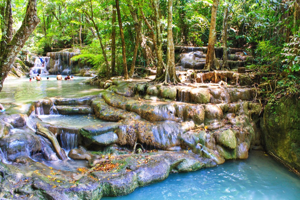 What To Expect: Altogether there are seven tiers of cascading waterfalls in Erawan National Park – each tier, or level, is marked and the distance to the next tier is also stated at each level. The hike to the last tier requires 45 minutes to an hour, with the level of the hike ranging from easy to medium.