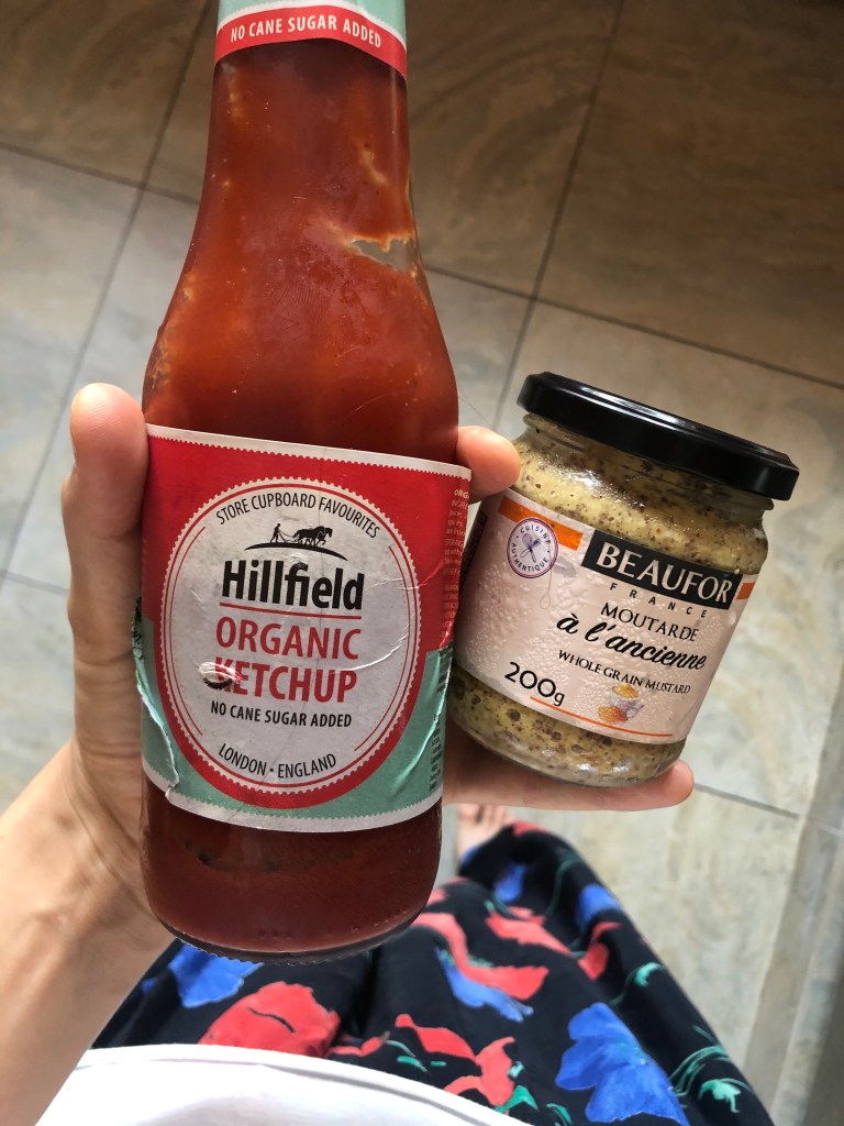 Less than 1/3 cup of tomato ketchup (Hillfield is organic and sugar free)
