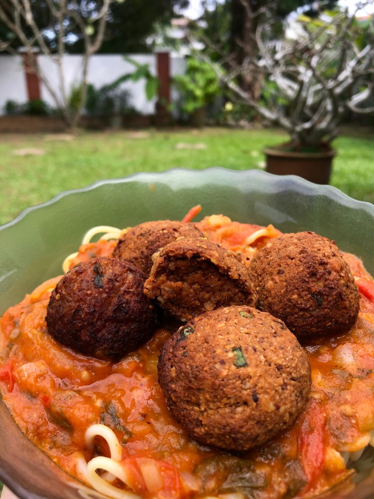 Y’all… That spaghetti Bolognese was a definite winner so in my opinion, do yourself a favour and use this recipe alongside a Bologense recipe. The texture of the vegan meatballs really mimic actual meatballs when paired with spaghetti Bolognese + the flavours just complement the tomato sauce. To be fair, though, it was a seriously nostalgic meal for me as I haven’t had spaghetti Bolognese with meatballs since becoming vegan.
