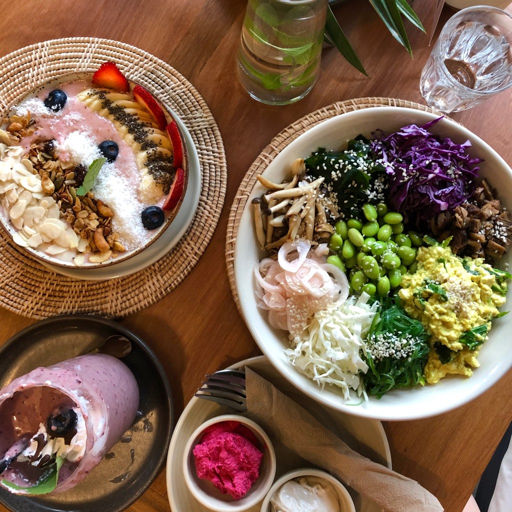 Annie Sweetery & Eatery is a personal favourite – mainly because I have a major sweet tooth and all desserts are gluten-free! Most of the desserts on offer are sugar-free, too, as coconut sugar is used in most items instead of refined sugar – a selection is pictured above. If you don’t have a sweet tooth then fret not as the main meals are scrumptious, too! I would recommend the Buddha Bowl as it’s the most bang for your back. For just 199 THB, you get served a massive bowl of plant based goodness. For those curious: my go-to creation typically includes berry rice, seaweed, cashew cream cheese, & vegan feta.