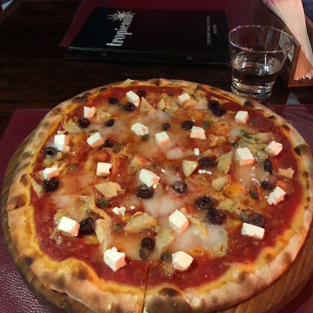 Yes, Tropicana is an Italian restaurant owned by an Italian yet serves gluten-free options! Don’t get too excited, though, because the gluten-free options are limited only to the pasta part of the menu; which is honestly a delectable part of the menu! As for vegan options, vegan pasta & pizza is available. As I visited during a ‘cheat day’, I devoured a vegan pizza with olives & artichokes – totally worth the gluten.